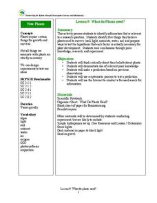 Students experiment with plants. In this plant lesson plan, students research the needs of plants. Students determine if all plants have the same requirements for growth. In small groups, students experiment with different plants.