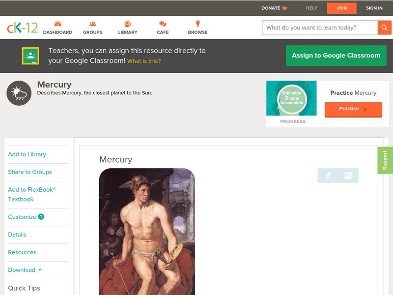 [Free Registration/Login may be required to access all resource tools.] Recognize the characteristics of the planet Mercury.