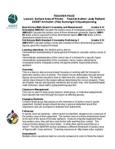 Students calculate the surface area of polygons. In this geometry lesson plan, students use spacial reasoning to find the answer to their problem. They analyze solids and create formulas to estimate the measurements of the area.