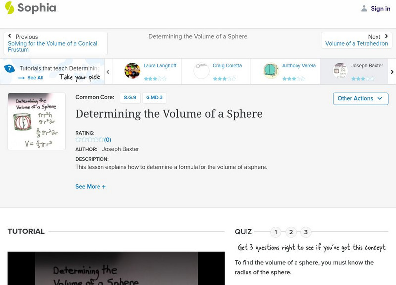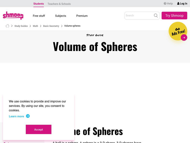 The geometry resource investigates the volume of a sphere. Formulas, examples, and practice exercises are included.