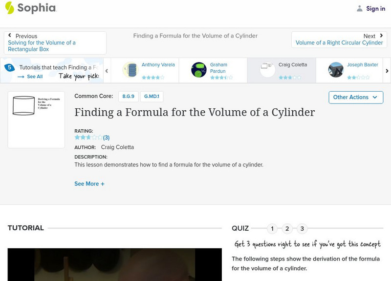Sophia: Finding a Formula for the Volume of a Cylinder