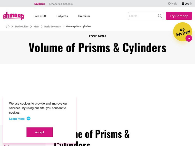 The geometry resource investigates the volume of prisms and cylinders. Formulas, examples, and practice exercises are included.