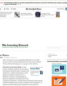 Students explore the properties of matter. In this cross curriculum three states of matter science lesson, students listen to the poem "Eighteen Flavors" by Shel Silverstein, and predict what will happen if listed ingredients are...