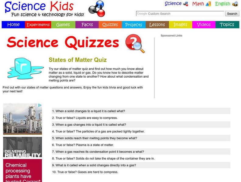 [Free Registration/Login Required] States of Matter Quiz - 10 questions Florida Standard: SC.A.1.2.1