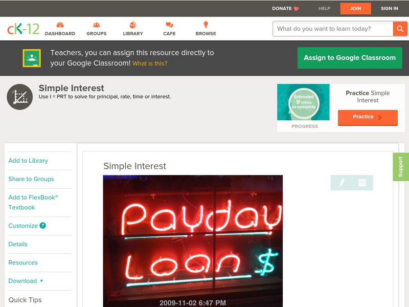 [Free Registration/Login may be required to access all resource tools.] In this lesson, students solve real-world problems involving simple interest by using problem-solving strategies. Students examine guided notes, review guided...