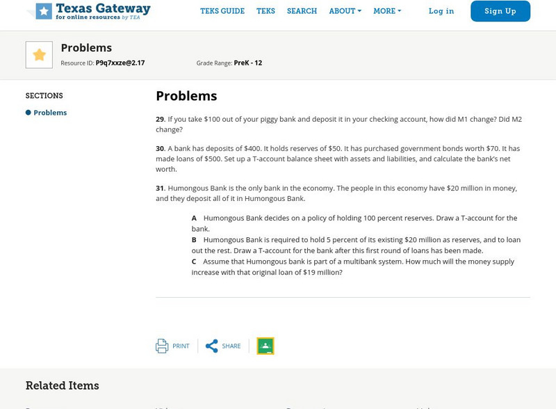 Texas Gateway: Ch. 13: Money and Banking: Problems