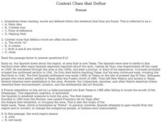 In this context clues worksheet, students define context clues and use them to define words in a reading passage.
