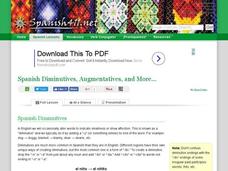 Teach your kiddies how to create diminutives and augmentatives in Spanish. They'll soon be adding -ito and -ita to every noun they can! Diminutives and augmentatives are much more common in Spanish, so there are many examples included...