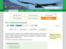 Under what conditions would your Spanish language learners use the conditional? They can find out here, and practice their new knowledge with the linked exercise. There is information about regular and irregular conditional verbs as well...