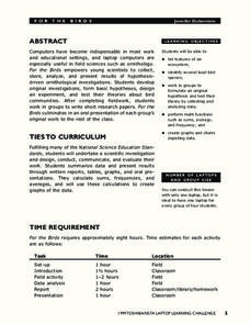 Seventh graders list the features of an ecosystem and identify local bird species. In this bird lesson students work in groups to formulate a hypothesis and test their theory by collecting and analyzing data.