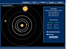 How does Mars move both eastward and westward in Earth's sky? A simple interactive describes the concept of retrograde motion using both color and graphic models. Learners understand that the speed of the orbit accounts for Mars' change...