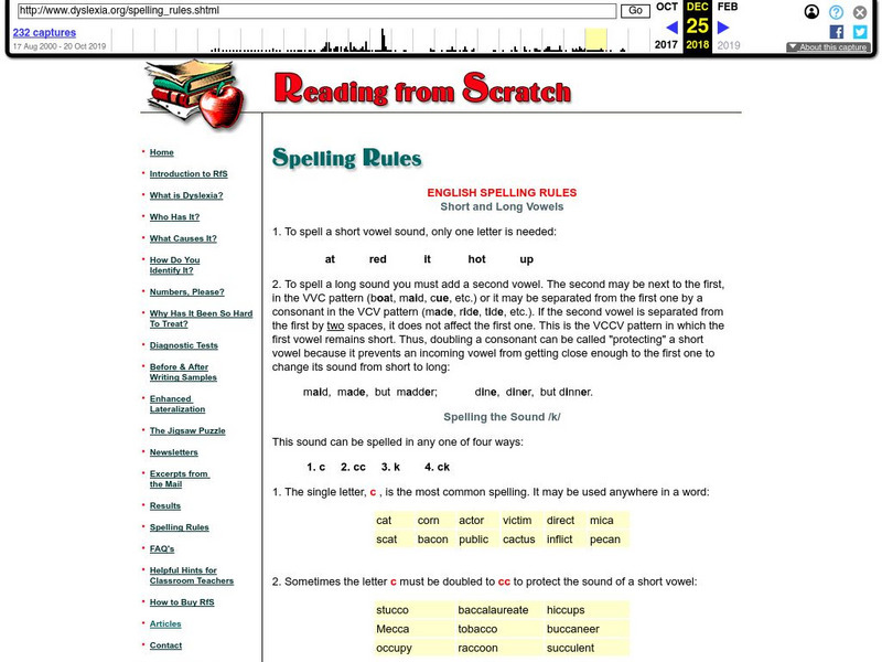 The "Reading from Scratch" site provides a list of spelling rules with examples.