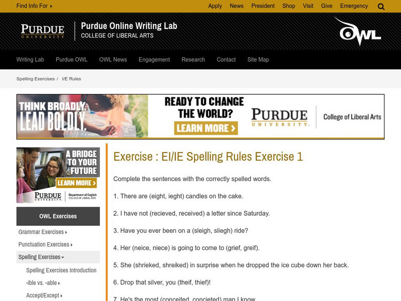 Purdue University Owl: Exercise: Ei/ie Spelling Rules Exercise 1