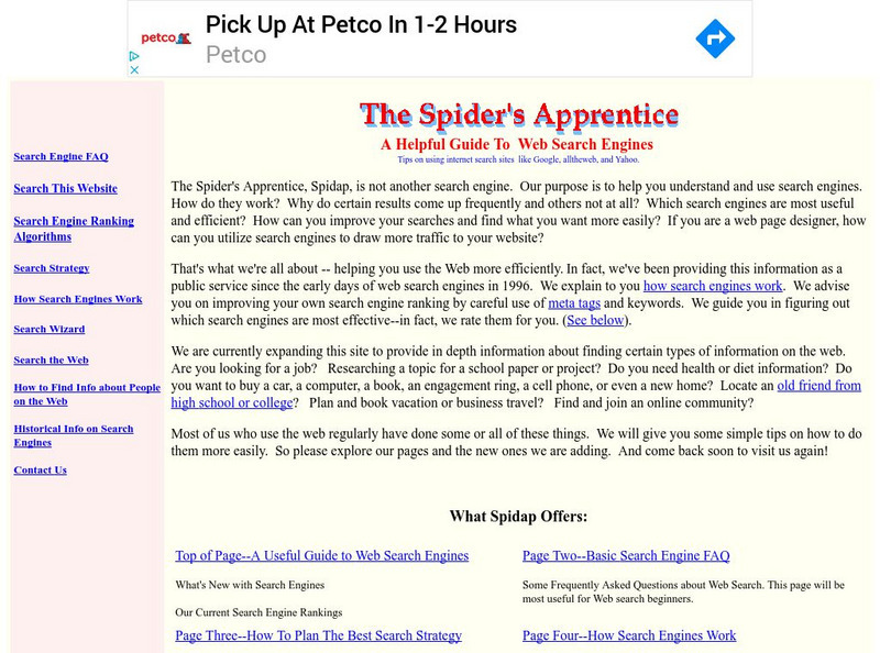 Spider's Apprentice: Helpful Guide to Web Search Engines