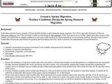 Middle schoolers keep detailed weather records during the spring migration of the monarch butterfly. To keep track of the weather, students utilyze weather reports and instuments such as anemometers, compasses, thermometers and rain gauges.