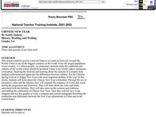 Learners investigate the celebration of Chinese New Year. In this Chinese New Year lesson, students discuss their favorite holiday before listening to a read aloud about Chinese New Year. They make red envelopes that are filled with play...