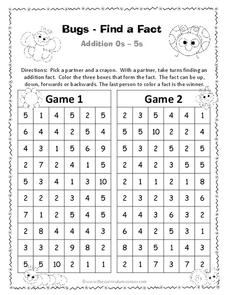 Test scholars' knowledge of addition facts with a festive worksheet that makes adding a two-person game. Pairs examine a grid of numbers to locate and color addition facts. Last person to color three squares wins!