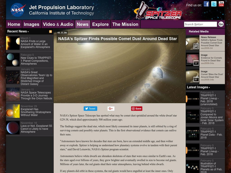 Under the heading, "Evidence for Comets Found in Dead Star's Dust" this site examines specific details of an chart/graph which demonstrates the cloud of dust involved in the white dwarf and this cloud's relation to the material...