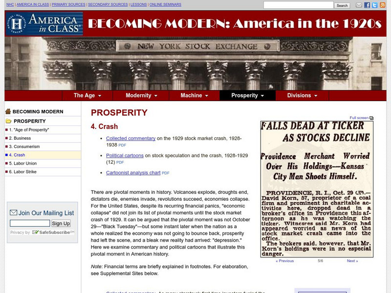 National Humanities Center: America in Class: America in the 1920s: Prosperity: Crash