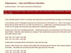 For this algebra worksheet, students solve a word problem using trigonometric identities. They solve problems about a love triangle. There is an answer key.