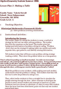 Sixth graders explore creating tables as a way to organize data. Students read story problems and discuss methods and strategies to solve them. They practice drawing tables, spotting patterns, and identifying missing information.
