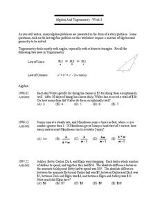 In this story problem worksheet, students read story problems, write equations, and solve. They use the law of sines, the law of cosines, the distance formula, and rates to solve problems. This two-page worksheet contains seven story...