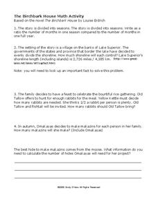 In this The Birchbark House math activity worksheet, students, after reading the story, complete 10 story problems based on the events in the story; this page has links to helpful websites.
