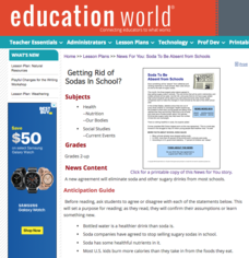 Should schools serve soda to students? Learners read an artlcle that argues against the sale of soda in schools and engage in a class discussion. They then complete a short assessment to check for comprehension and reflect on the...