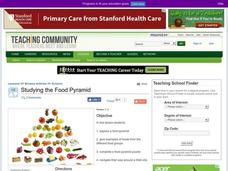 Students examine the food pyramid. In this healthy diet lesson, students view the food pyramid and discuss healthy eating. Students find examples of healthy food in magazines and share their findings. Students plan healthy means and...