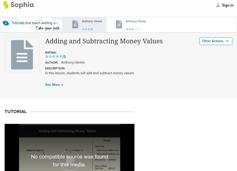 [Free Registration/Login may be required to access all resource tools.] A video showing how to add and subtract money amounts up to $10. [2:45]