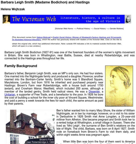 Brown University: Victorian Web: Barbara Leigh Smith (Mme. Bodichon)