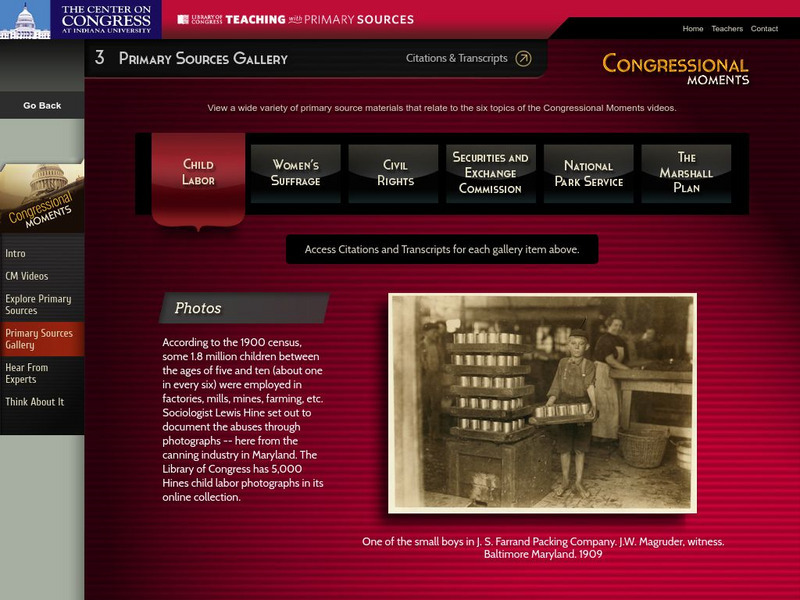 View a wide variety of primary source materials that relate to these six topics: Child Labor, Women's Suffrage, Civil Rights, National Park Service, Securities and Exchange Commission, and The Marshall Plan. Transcripts are available for...