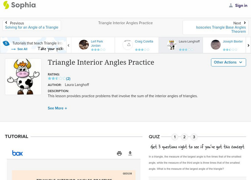 Sophia: Triangle Interior Angles Practice: Lesson 5