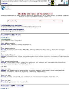 Students explore the life and times of Robert Frost. Using a fact worksheet imbedded students access websites to gather information about the life and writings of Robert Frost.