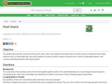 Learners identify the locations of coral reefs. In this oceanography lesson, students use the Coral Reefs website to locate the coral reefs on a world map and discuss ways to help protect the coral reefs.