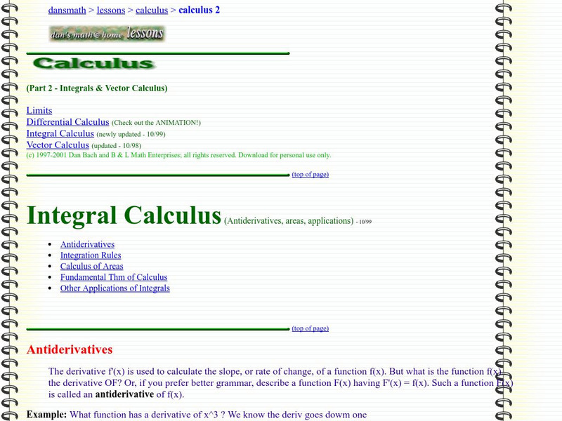 College professor Dan Bach offers a review of the calculus concepts of integrals and vectors. Examples and animated graphs are provided.
