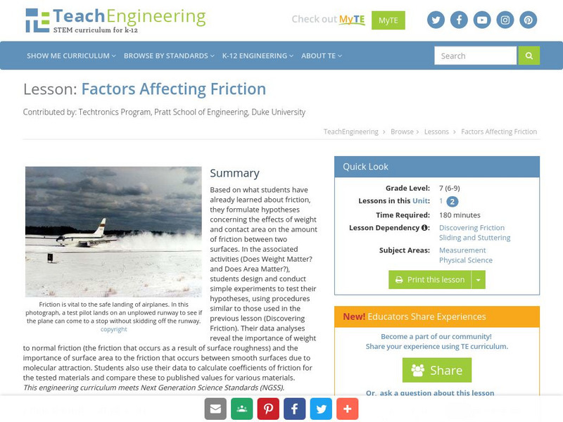In this instructional activity, students use previous knowledge about friction to formulate hypotheses concerning the effects of weight and contact area on the amount of friction between two surfaces. In the Associated Activities (Does...