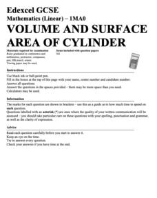 The measurements are all in the can. The review for the math portion of the General Certificate of Secondary Education assessments provides scholars the opportunity to review finding volume and surface area of a cylinder. Pupils work on...