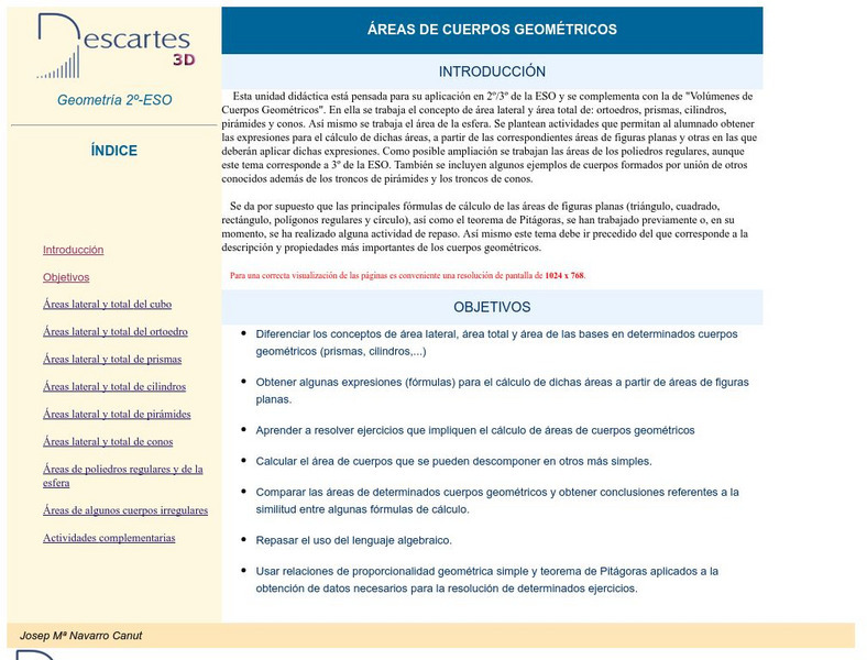 In Spanish. Interactive resources and activities that could be used in the classroom either as an introduction or review to a unit dealing with the area of three dimensional figures.