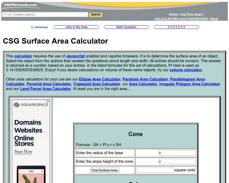 Calculator Soup: Surface Area Calculator