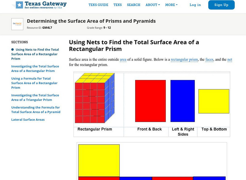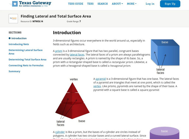 Texas Gateway: Determining the Surface Area of Prisms and Pyramids