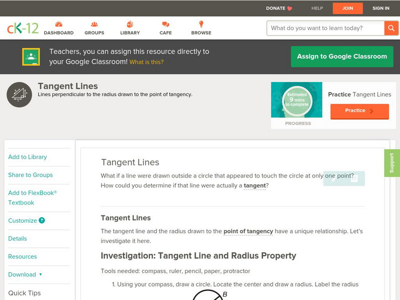 Ck 12: Interactive Geometry: 8.7 Tangent Lines to Circles