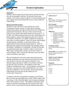 Ninth graders investigate the factors that increase soil erosion. They identify how the environment is affected by erosion. In small groups, 9th graders research erosion problems in various locations. Groups brainstorm ideas to help...
