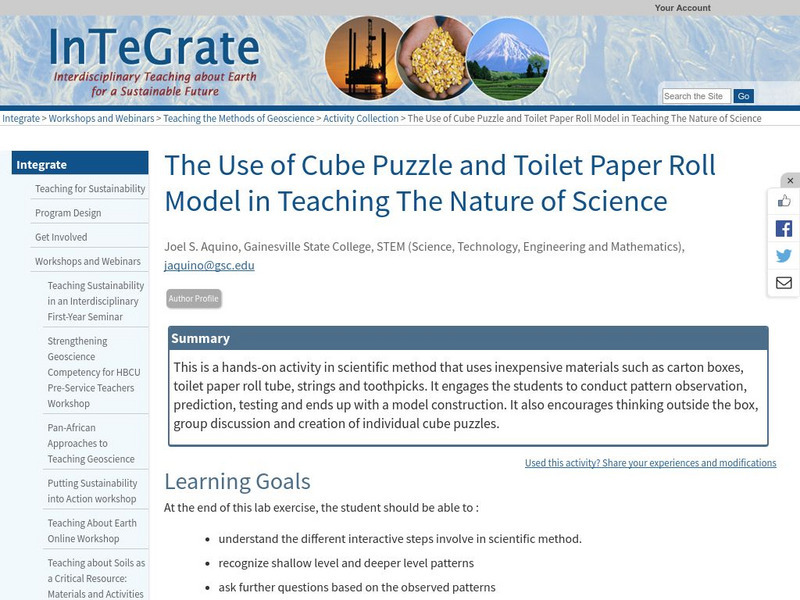 Serc: Cube Puzzle and Toilet Paper Roll Model in Teaching the Nature of Science