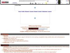 Second graders identify two digit numbers and work with two digit subtraction problems. They use manipulatives to demonstrate each problem.