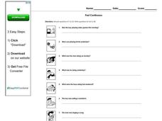 In this past continuous form worksheet, students analyze 8 pictures and read a question about each one. Students write the answer to each. This is intended for ESL use.