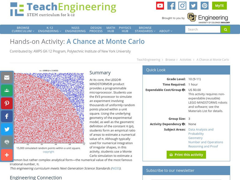 At its core, the LEGO MINDSTORMS product provides a programmable microprocessor. Students use the EV3 processor to simulate an experiment involving thousands of uniformly random points placed within a unit square. Using the underlying...