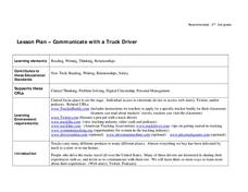 Learners explore the communication methods of truck drivers and their experiences. In this truck driving lesson, students use a website, Twitter, and Podcasts to learn about the job of a truck driver and their contributions to...