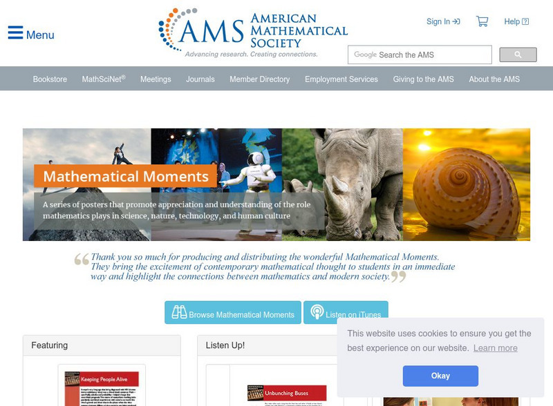 Use this resource to promote an awareness of mathematics as it occurs in nature, science, technology and human culture. This series of articles and podcasts can be used as teaching resources.