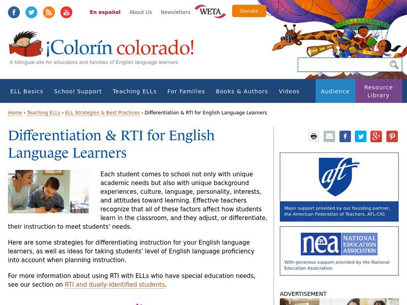 Colorin Colorado: Differentiated Instruction & Rti for El Ls